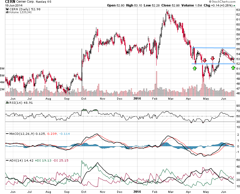 חברת קרנר עברה תיקון עמוק מאוד בירידות האחרונות של מניות הטכנולוגיה (נסד"ק 100). המניה ירדה חזק מאוד מאזורי שיא כל הזמנים סביב 63 דולר לרמה של 48.5 דולר בחודשיים בלבד (מרץ-אפריל). גם בגרף השבועי הארוך (שאינו מצורף) התיקון היורד האחרון נראה באופן ברור ואינו נראה טוב, אולם בטווח הקצר ישנם סימנים מעודדים.