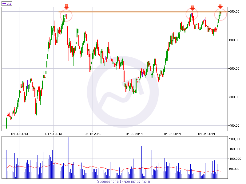 בגרף המחירים ניתן לראות בבירות את הפסגה המשולשת אשר מעידה על אזור מוכרים סביב 650 נקודות כך שרק פריצה נוספת והתבססות מעל רמה זו תהווה טריגר אמין להמשך המגמה החיובית בנייר.