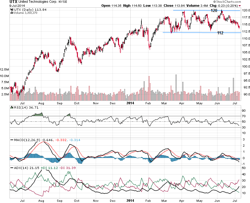 בגרף היומי הקצר, ניתן לראות את התנועה האופקית במניה מחודש מרץ האחרון ועד היום. למעשה המניה נסחרת בטווח יחסית צר בין התנגדות סביב 120 דולר לרמת תמיכה חזקה סביב 112 דולר שהיא השפל האחרון הן בגרף הקצר והן בגרף הארוך.