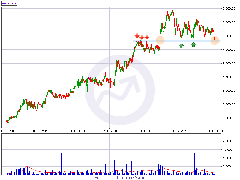 בהנחה שהמניה תתהפך כלפי מעלה יש לשים לב ל- 2 רמות התנגדות: הראשונה סביב 8,000 נקודות והשניה סביב 8,300 נקודות. בהצלחה.