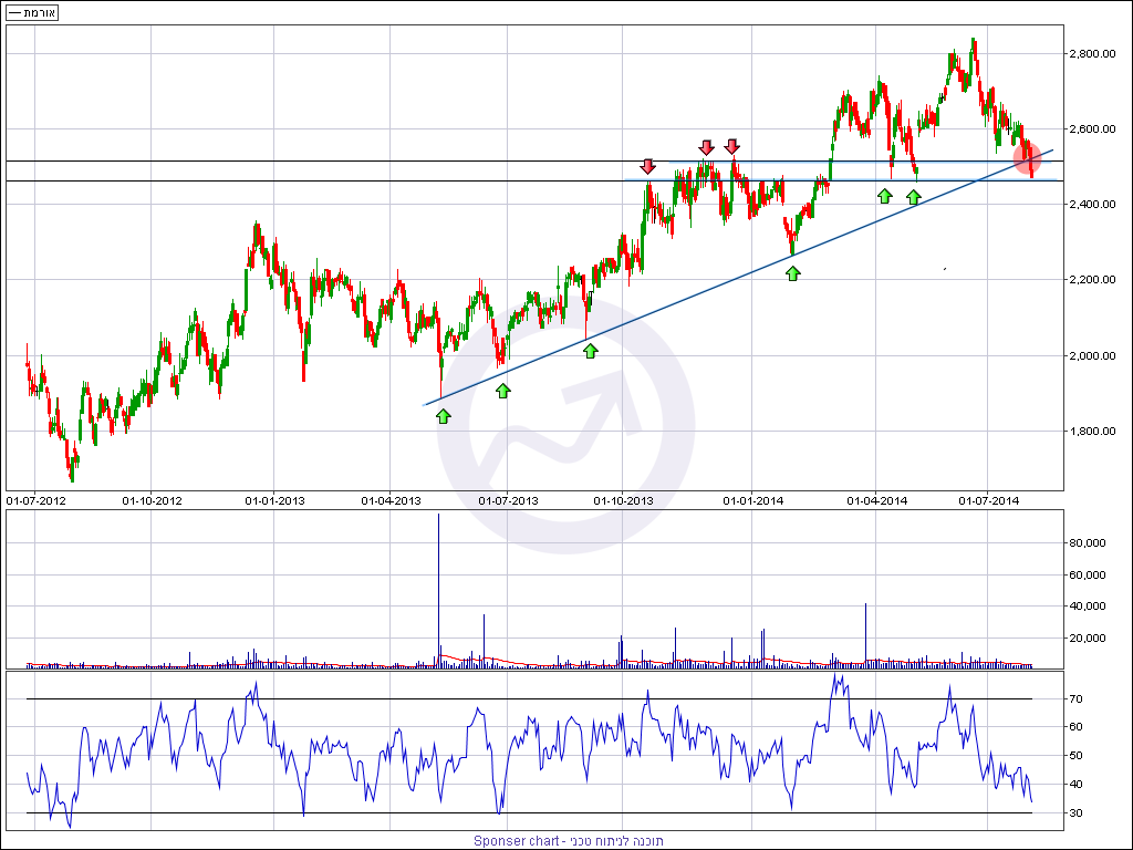 מהזווית הטכנית, המניה נסחרת כבר מספר חודשים בטווח מסחר ברור מאוד מעל אזור תמכיה אופקי סביב 2460 נקודות לרמות שיא של השנה האחרונה ולמעשה של שלוש השנים האחרונות מעט מעל 2800 נקודות.