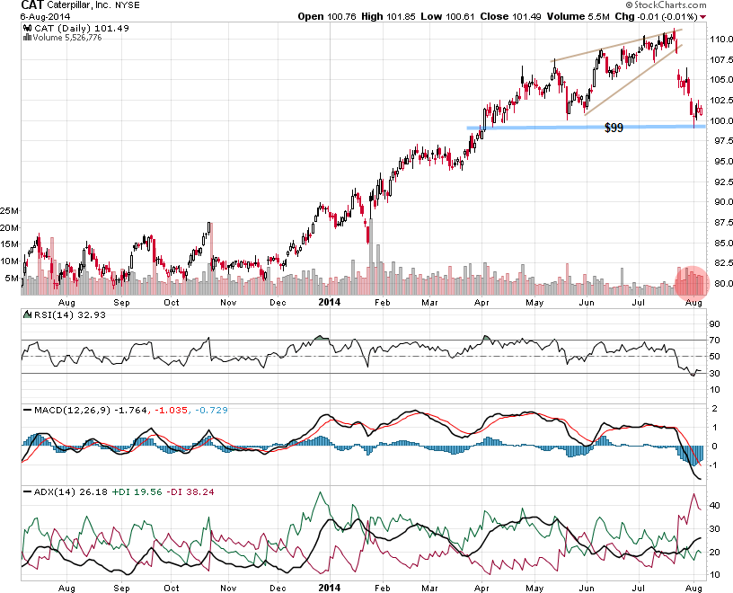 קטרפילר (סימול: CAT) – החברה עוסקת בייצור ושיווק של מכונות למגוון תעשיות (בעיקר לבנייה וחקלאות). החברה בנויה מ 4 חטיבות: חטיבת המכונות, חטיבת המנועים, חטיבה פיננסית וחטיבת הביטוח. בנוסף, החברה מחזיקה חברת לוגיסטיקה המספקת פתרונות ושירותים מסביב לעולם. החברה נסחרת במדד הדאו ג’ונס 30 והאס אנד פי 100 ו 500 בשווי שוק של 63.7 מיליארד דולר.