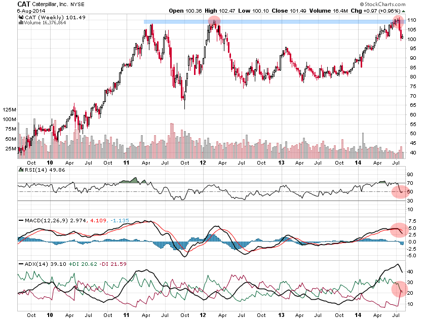 בגרף השבועי המצורף לסקירה אפשר לראות באופן ברור את רמת 110 דולר שהיא שיא כל הזמנים והתנגדות אופקית חזקה מאוד של השנים האחרונות. בנוסף חלק מהאינדיקטורים הטכניים נמצאים באיתותים שליליים והמהירים שבהם (RSI) כבר עובר לטריטוריה דובית בגרף השבועי.