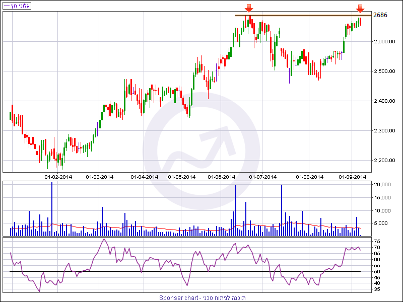 הנחת עבודה לטווח זמן הקצר – דשדוש בטווח 2,685 – 2,600 נקודות. במידה והמניה תרשום פריצה של 2,685 נקודות ותתבסס מעליה הנחת העבודה תהיה זהה ומחיר היעד הקרוב סומן ב- 2,870 נקודות.