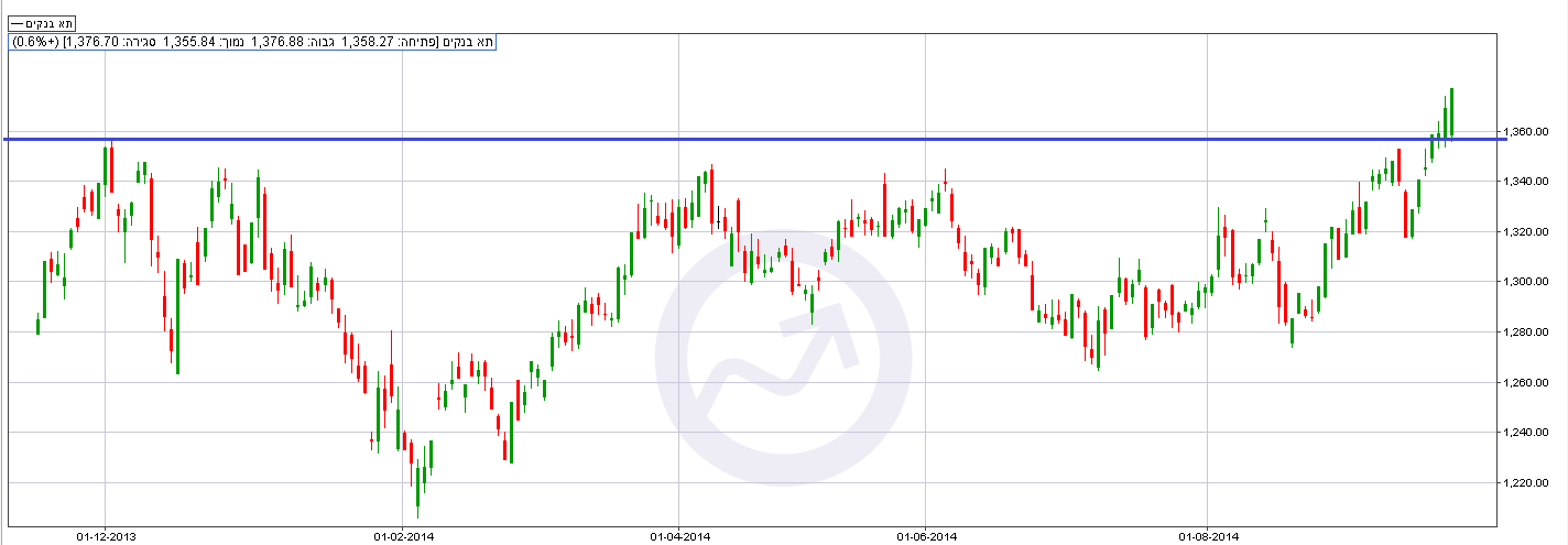 ניתוח טכני - מדד הבנקים פרץ בשבוע החולף דשדוש ארוך טווח, ורשם שיא שנתי חדש לאחר שניפץ את השיא הקודם ברמה של 1350 הנקודות. לדעתנו התקבל במדד איתות קניה טכני ברור, עם יעד גבוה במיוחד של 1450 נקודות.