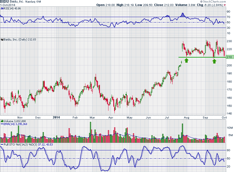 מניית ביידו עלתה מתחילת השנה ב- 19.2% ונסחרת סביב רמת השיא מאז הונפקה. בחודשיים האחרונים המניה מדשדשת בטווח מחירים צר יחסית, קודם לכן המניה רשמה זינוק חד בהשפעת הדו"ח הרבעוני. החברה ניפצה את תחזיות האנליסטים אשר ציפו לרווח של 1.24 דולר למניה בעוד שהחברה דיווחה על רווח של 1.63 דולר, 0.39 דולר מעל התחזיות. בתאריך 04.11.2014 החברה צפויה לדווח ואנליסטים מצפים לרווח של 1.61 דולר למניה.