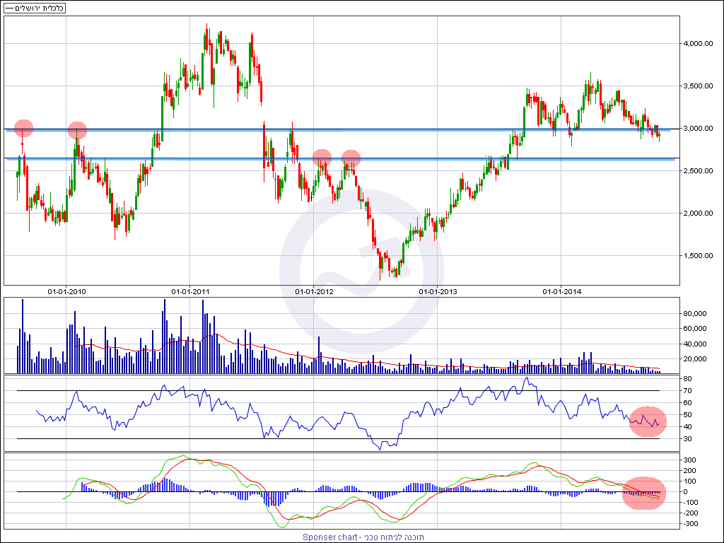 לאחר עליות שערים נאות שהחלו ברבעון האחרון של 2012 ומשכו לתוך 2013 נסחר המניה בעליות שערים נאות מאוד. מתחילת שנת 2014 המניה נסחרת בתנועה אופקית (רחבה יחסית) ונכון לכתיבת שורות אלה הניבה תשואת שלילית של 11.8% בעוד מדד הנדל"ן אליו שייכת המניה הניב תשואה של 5.6%. כמו כן, ניתן לראות בגרף השבועי המצורף לסקירה את רמות התמיכה החשובות על הגרף, האחת סביב אזור 3000 נקודות והשנייה סביב 2650 נקודות.
