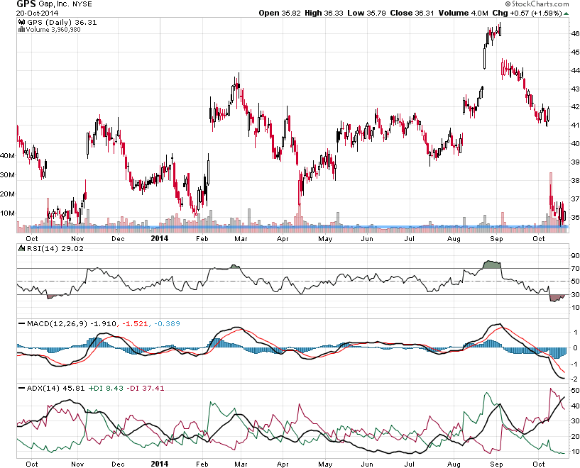 עוד לפני הדוח של החברה שיפורסם ב 20 לחודש נובמבר, צנחו בשבוע שעבר מניות החברה בגלל שתי הודעות שליליות, האחת סיום התפקיד של המנכ"ל גלן מרפי בתחילת פברואר 2015 לאחר 7 שנות כהונה. בנוסף מספרים לא מחמיאים ממותגי גאפ, אולד נאבי ובננה רפובליק שפרסמו תחזית צמיחה של 1% ביחס לשנה שעברה.