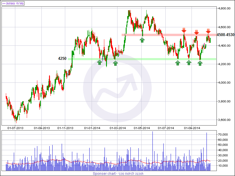 יש לציין שבתמונה הרחבה יותר – אזור 4,250 נקודות מהווה רמת תמיכה מהותית אשר תמכה במניה ב- 12 החודשים שחלפו. רמה זו חשובה ותכריע את מגמת המניה בטווח הבינוני-ארוך.