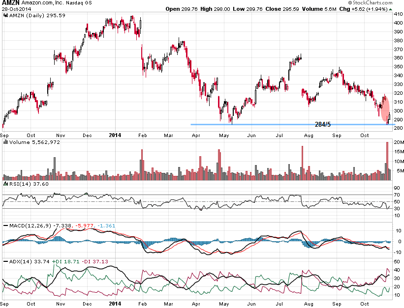 בשבוע שעבר החברה דיווחה על תוצאותיה לרבעון השלישי של השנה, החברה פספסה את תחזיות האנליסטים והצידה הפסד גדול יותר מהציפיות. החברה הפסידה 0.95 דולר למניה בעוד הציפיות עמדו על 0.73 דולר. השוק העניש חזק מאוד את ענקית המסחר המקוון ושלח אותה לרמה של 285 דולר למניה בדיוק הנמוך השנתי שנקבע במאי האחרון.