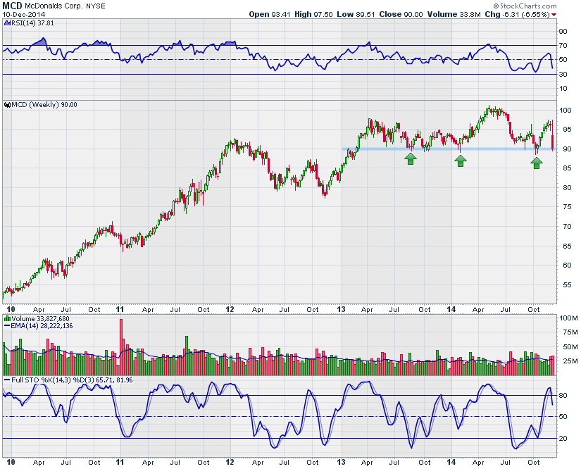 מקדונלד’ס (סימבול: MCD)– מפעילת רשת המזון המהיר הגדולה בעולם. הרשת מפעילה כ- 35 אלף סניפים ברחבי העולם. מניות החברה הנסחרות בבורסת ניו יורק ונכללות במדד הדאו ג’ונס היוקרתי לפי שווי שוק 87.59 מיליארד דולר.