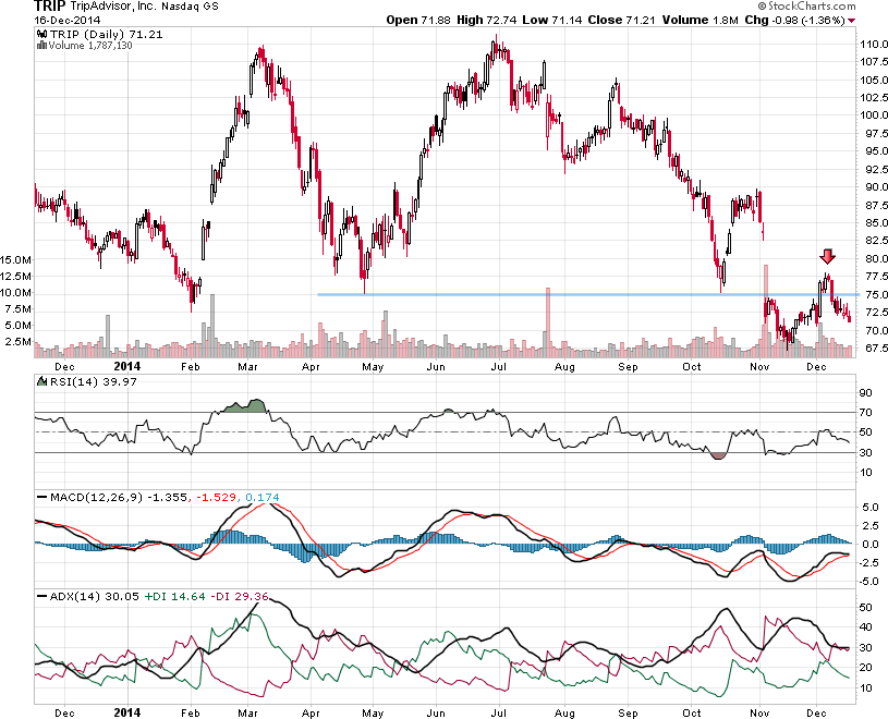 שנת 2014 לא האירה פנים למניה, סיום השנה נראה עגום ביותר לאחר תבנית פסגה כפולה ושיא כל הזמנים ברמה של 110 דולר למניה מוקדם יותר השנה וזאת למרות עוד שנת שיא במדדים ארה"ב.