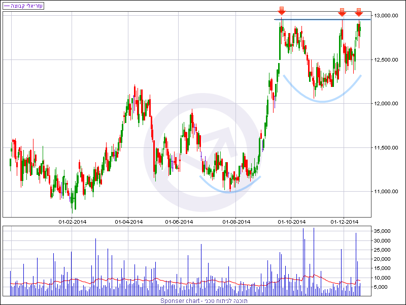 מניית עזריאלי זינקה מתחילת השנה בכ- 14% ונסחרת בסמוך לשיא השנתי סביב 12,957 נקודות. רמה זו בלמה את גל העליות פעמיים וביום שלישי האחרון נבלמה בפעם השלישית. תצורת גרף המחירים המתהווה על פני התקופה האחרונה הינה חיובית ומלמדת על אפשרות לפריצת השיא השנתי בדרך לשיאים חדשים.