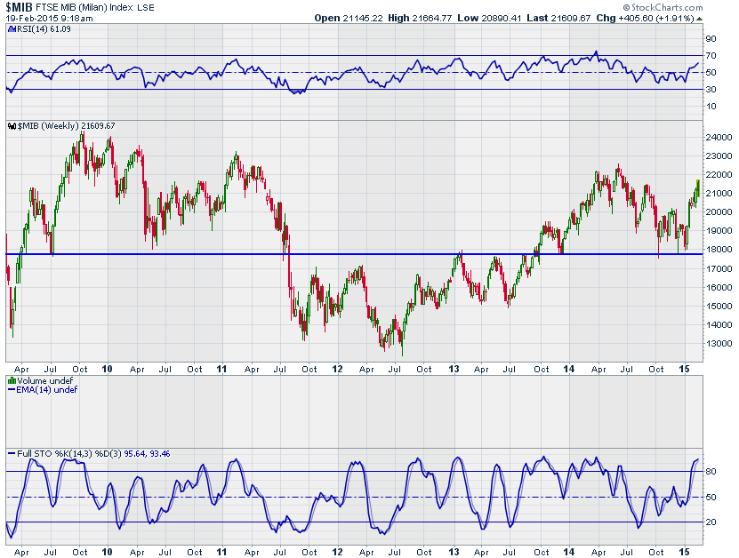 מבחינת השווקים, המדיניות המוניטרית האירופאית נראית בבירור בשוק האג"ח האיטלקי, כשתשואות האג"ח ל 10 שנים ירדו מרמה של 7.3% בתחילת 2012 לרמה של כ 1.6% כיום. שוק המניות מציג גם הוא נתונים מעניינים כשהמדד המרכזי של בורסת מילאנו FTSE MIB, נסחר במחיר הנמוך בכ 55% ממחירו טרום משבר 2008, פער מחירים משמעותי לעומת מדדים מקבילים בצרפת ומדדים כלל אירופים.