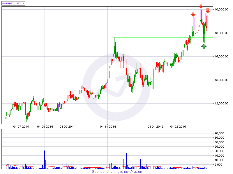 מהזווית הטכנית, המניה כאמור נסחרת סביב מחיר שיא אשר נרשם בתחילת חודש פברואר ברמה של 15,550 נקודות (במונחי שער סגירה). מה שמעניין בתקופה האחרונה הוא התנודתיות שעלתה מדרגה סביב אזור זה. נראה שיש מוכר אשר פועל בנייר ומורגש בעיקר בשבועיים האחרונים. המניה נסחרת במהלך היום בעליה ולקראת סיום עוברת לירידה.