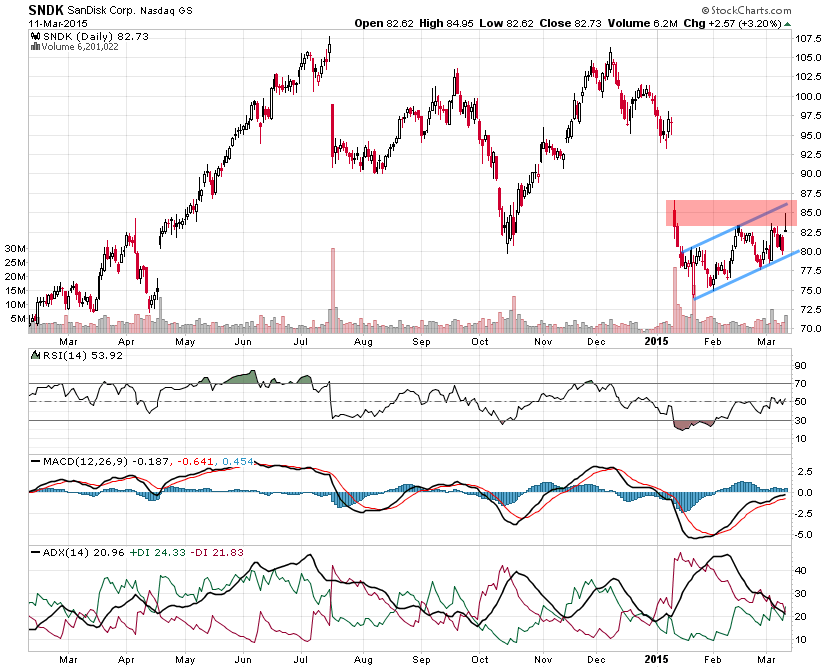 סאנדיסק (סימול- SNDK) – החברה עוסקת בפיתוח ועיצוב כרטיסי זיכרון ומידע מבוססי פלאש. ניתן למצוא את מוצרי החברה בנגני MP3, טלפונים חכמים, מצלמות, מחשבים ניידים ואישיים, דיסק און קיי ועוד. החברה נסחרת במדד האס אנד פי 500 והנסד"ק 100 בשווי שוק של 17.6 מיליארד דולר.