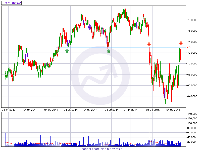מהזווית הטכנית, המניה זינקה מהשפל שנרשם בחודש פברואר סביב רמה של 63 אג’ ועד לרמה של 73 אג’ בפרק זמן קצר. בימי המסחר האחרונים המניה מתמודדת עם אזור התנגדותי סביב 73 אג’. קודם לכן אזור זה שימש כרמת תמיכה בתקופה של ינואר עד דצמבר 2014 ומאז שרמה זו נשברה כלפי מטה המניה סבלה מתנודתיות חריפה וירידות שערים חדות.