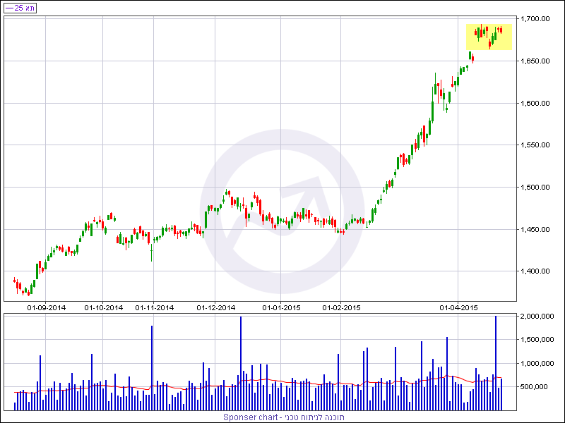 הדשדוש - בשבועיים שחלפו מדד המעו"ף מדשדש סביב שיא כל הזמנים בין 1,694 נקודות מלמעלה ו- 1,664 נקודות מלמטה. דשדוש סביב רמת שיא לרוב מסתיימת בגל עליות מחודש וככל שהדשדוש יהיה ארוך יותר כך גם גל העליות העתידי. יחד עם זאת יתכן והמדד ירשום תיקון עמוק טרם ימשיך במגמה השורית. אזור 1635 נקודות אמור לשמש כרמת תמיכה במידה והמדד יעמיק את התיקון וכל עוד נסחר מעל רמה זו הצפי הוא המשך המגמה השורית במדד.