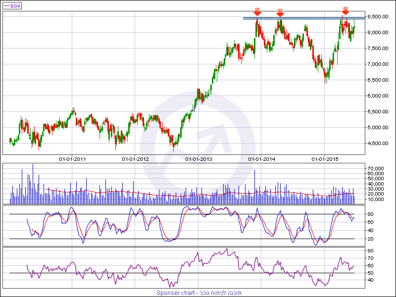 הנחת עבודה – בשל תצורת גרף המחירים קיימת אפשרות סבירה לפריצת אזור התנגדות הנ"ל לשיאים חדשים. הטריגר החיובי יתקבל בסגירה מעל 8,470 נקודות והתבססות מעל רמה זו תאשרר את ההנחה. מחיר היעד הראשון סומן סביב רמה של 9,230 נקודות.