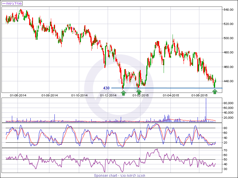 מהזווית הטכנית, המניה התהפכה השבוע מעל רמת תמיכה אופקית חשובה סביב אזור 430 נקודות. רמה זו בלמה את גל הירידות החד שנרשם במניה ברבעון האחרון של שנת 2014 ופעם נוספת במהלך חודש ינואר האחרון. בשל חשיבות אזור זה, יחד עם ההיפוך שנרשם השבוע, נראה שאזור 430 מסתן כאזור תמיכה מהותי להמשך קיומה של המגמה הראשית העולה בנייר.