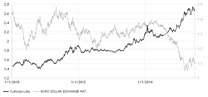 האירו אומנם פוחת מ-1.4 ל-1.1 בערך, כ-23 אחוזים, אבל הלירה הטורקית פוחתה מ -1.5 ל-2.7, פיחות של כ-80 אחוז פחות, ובכך נשמר היתרון התחרותי של טוריה מול יוון.