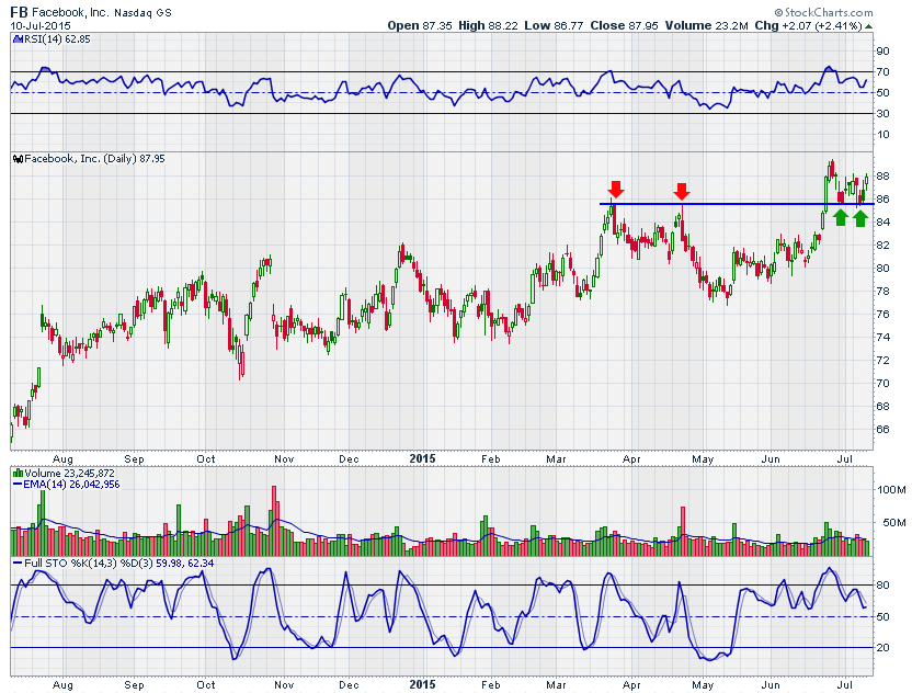 מניית פייסבוק רשמה תשואה חיובית של כ- 13% מתחילת שנת 2015, זאת לאחר שפתחת את השנה במגמה שלילית והחל מחודש פברואר נסחרת במגמה עולה. לצורך השוואה, מדד הנאסד"ק 100 רשם תשואה חיובית של כ- 4% מתחילת השנה.