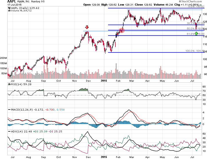 ברבעון האחרון נסחרה המניה בתנועה צידית בין אזור של 119-134 דולר. התיקון של השבוע שעבר לקח את המניה לאזור תמיכה כפולה, רמת השיא הקודם שנפרצה סביב 119 דולרים ואזור תיקון 50% למהלך העולה האחרון שהחל בינואר באזור של 104 דולר.