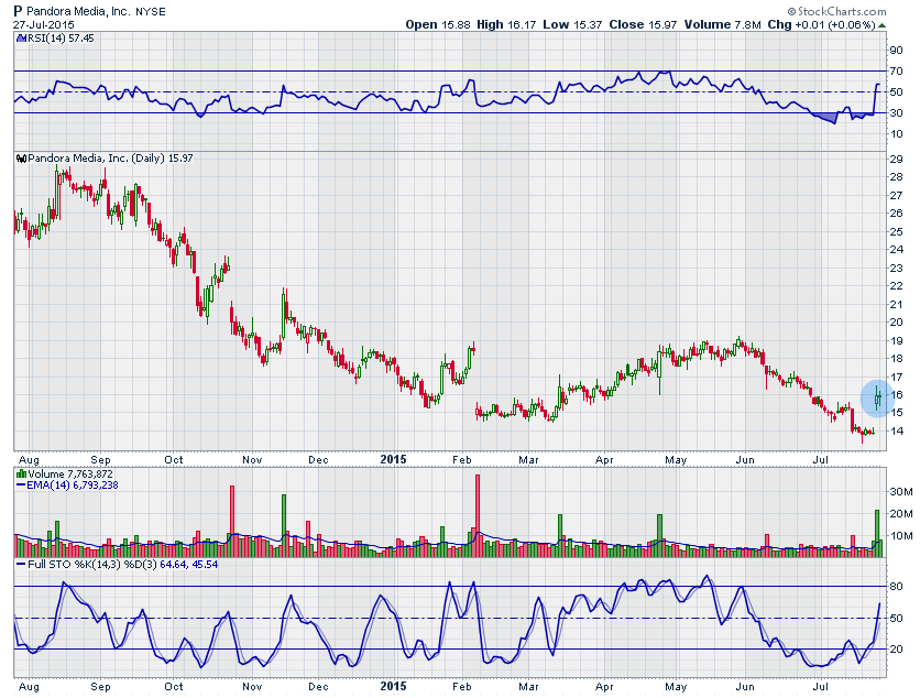 פנדורה מדיה (סימבול: P)– החברה מספקת שירותי הזרמת מוזיקה באינטרנט ומציעה לגולשים מגוון שירותים המותאמים לטעמו של הגולש. באמצעות הפלטפורמה של פנדורה, מתבצעת הפניה לרכישת מוזיקה באתרים כמו איי טיונס ואמזון. מניות החברה נסחרות בבורסת ניו יורק לפי שווי שוק של 3.39 מיליארד דולר.