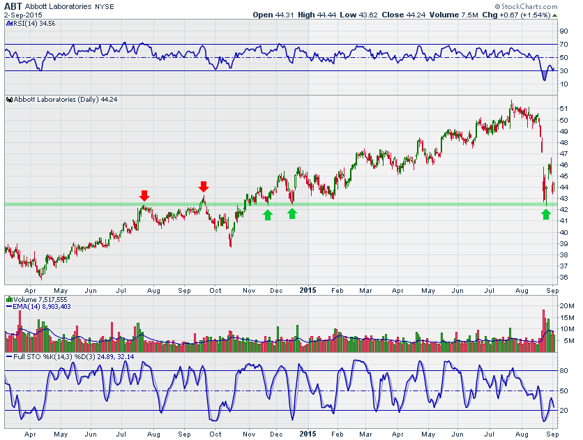 בסקירה האחרונה על מניית אבוט ציינו מחיר יעד של 53 דולר כאשר נסחרה סביב רמה של 46.8 דולר. המניה כמעט וצלחה את היעד כאשר רשמה שיא חדש ברמה של 51.2 דולר במהלך חודש יולי. מאז המניה רשמה ירידה חדה, בהתאם לגל המימוש החד שפקד את השווקים במהלך חודש אוגוסט. נכון ליום המסחר האחרון (ד’) המניה התממשה בכ- 14% מרמת השיא.