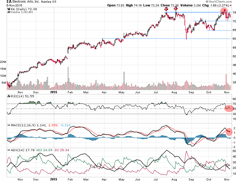 בטווח הקצר, ניתן לראות את המניה נבלמת סביב השיא האחרון ברמה של 75.5 דולר למניה. שיא שנקבע ביולי ובאוגוסט האחרונים ואליו חזרנו במהלך העולה האחרון בשוק. יום לפני הדוחות המניה נסחרה בגבוה חדש מעל רמה של 75 דולר אולם לאחר פרסום הדוח וניפוץ התחזיות המניה חזרה מתחת לרמת הפריצה. העליות בשבוע האחרון לא הצליחו להכניס קונים חדשים למניה וחזרה מעל לרמת השיא.