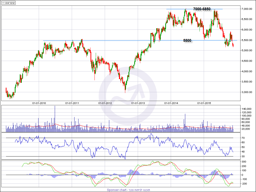 בטווח הקצר – ניתן לראות את הירידות האחרונות במניה מאזור של 5800/5900 נקודות לשפלים האחרונים ברמה של 5200 נקודות. בימי המסחר האחרונים ניכר לחץ של מוכרים (נרות אדומים) והצמדות לנמוכים מה שמראה על סיכוי סביר מאוד לראות שבירה של התמיכה והמשך מימוש.