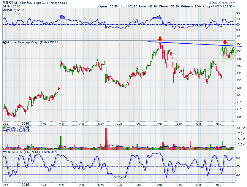 מאז הסקירה האחרונה אשר פורסמה בדיוק לפני שנתיים, שילשה המניה את ערכה, אז נסחרה באזור 57 דולר וכיום נסחרת ברמה של 152.26 דולר. באוגוסט 2014 קוקה-קולה רכשה נתח של כ- 17% מהחברה, מהלך אשר טרם משמעותית למערך ההפצה של משקאות מונסטר אל מחוץ לגבולות ארה"ב וקנדה.