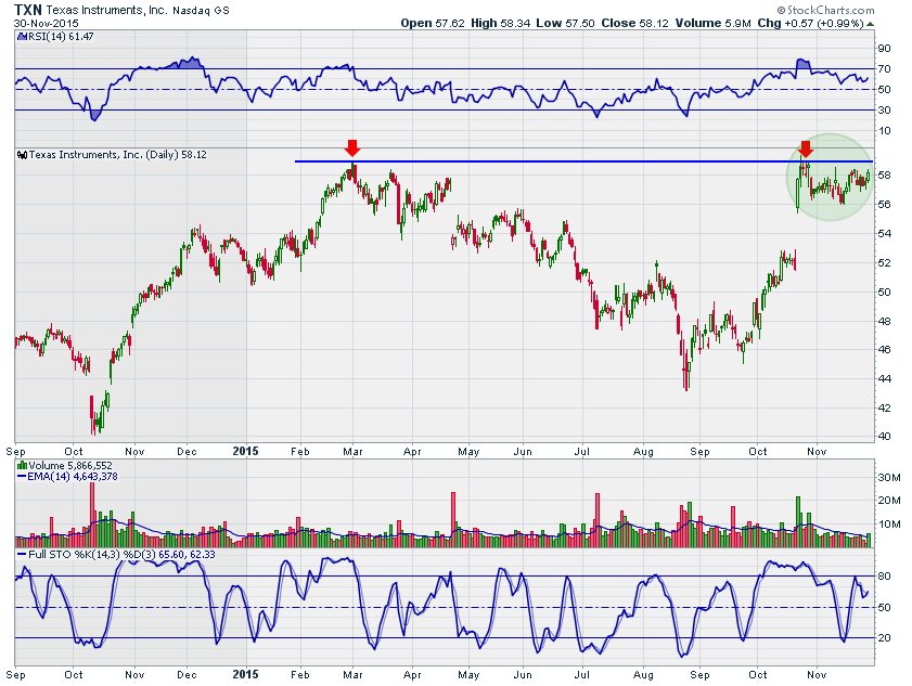 טקסס אינסטרומנטס (סימול: TXN) - החברה עוסקת בפיתוח ובייצור של מוצרי מחשוב בתעשיית המוליכים למחצה - לרבות מעגלים משולבים לטלפונים סלולריים, מעבדים ומחשבונים. מניות החברה נסחרת במדד הנאסד"ק 100 לפי שווי שוק של 58.96 מיליארד דולר.