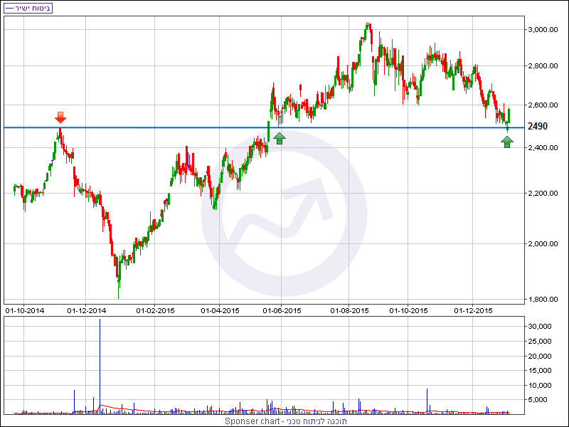 מהזווית הטכנית, המניה רשמה ירידות שערים ברבעון האחרון של שנת 2015. המימוש יצא לדרך בחודש אוגוסט, אז נסחרה המניה בשיא של 3025 נקודות ומאז איבדה כ- 17% מערכה, בהתאם למגמת השוק. המניה חתמה את היום האחרון של שנת 2015 בהיפוך מעל רמת תמיכה אופקית סביב 2490 נקודות ואמש (א’) המניה רשמה עליה של כ- 3%, המהווה אישור להיפוך המגמה.