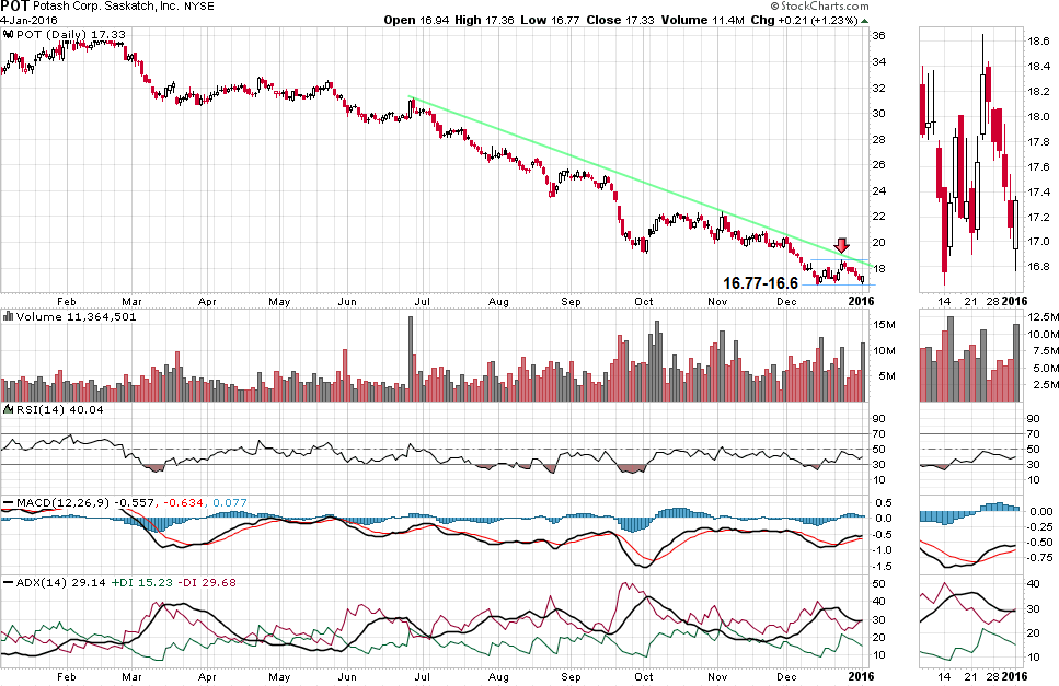 ירידת מחירי הסחורות, האטה בכלכלה העולמית וצמיחה האפסית בשווקים המתעוררים, בעיקר סין, פגעו חזק מאוד במניית פוטש ובסקטור בשנה האחרונה. מניות החברה אבדו מעל ל 50% מערכן מרמות שיא של 36 דולר לרמות שפל שנבדקות בימים האחרונים סביב 16.6-17 דולר למניה.