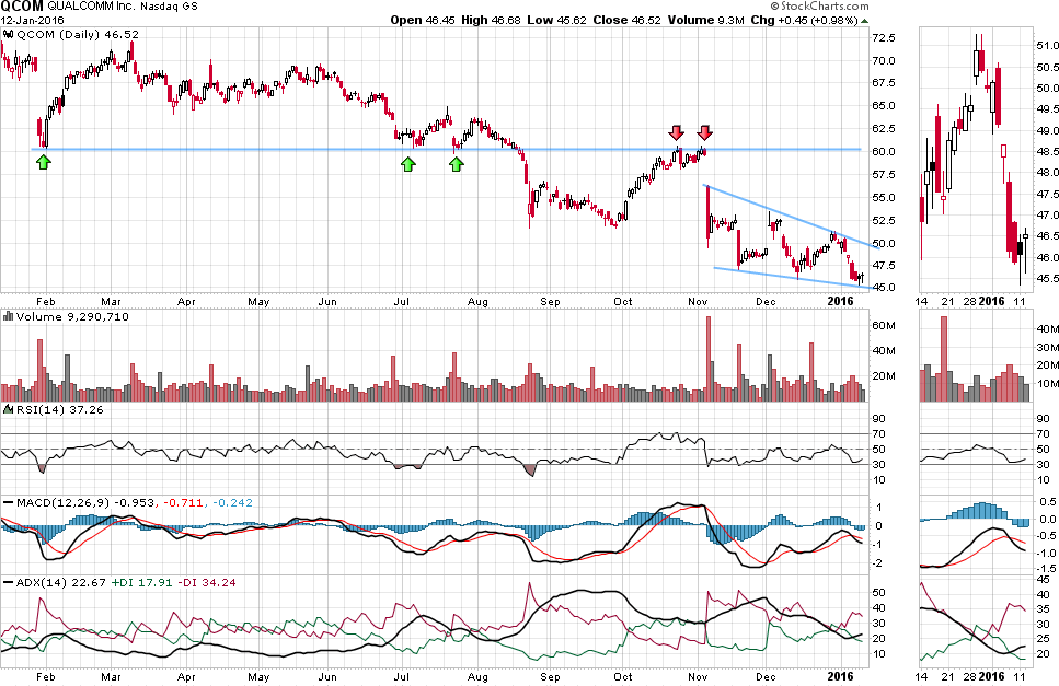 שנתיים לא טובות עברו על ענקית השבבים קוולקום, מניות החברה ירדו מרמות השיא ב 2014 של 78 דולר לאזורי שפל של 45 דולר למניה בשבוע המסחר האחרון.