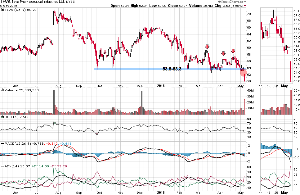 ניתוח טכני – לאחר לחץ כלפי מטה מחודש פברואר האחרון שהמשיך בחודש מרץ ואפריל, שברה המניה ביום שישי את אזור התמיכה סביב 53.3-53.5 דולר בכך נתנה איתות טכני שלילי מהותי מאוד.
