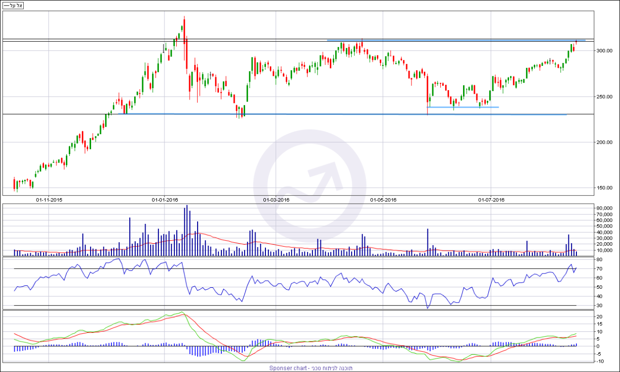 אם ברמות השפל השנה המניה הגיעה לרמה של 240 נקודות וכעת לאחר דוחות טובים חזרנו שוב לאזור ההתנגדות נראה שסך הכל קיימת אפשרות יציאה נוחה מאוד למימוש מלא או חלקי למי שמעריך שלא נראה שיאים חדשים בקרוב.