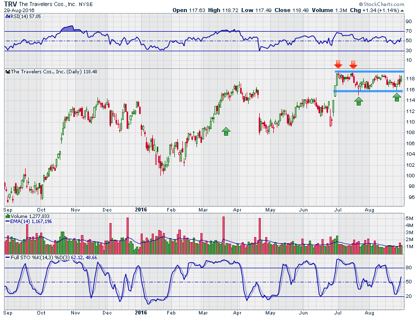 גרף מניית טרוולרז; מקור:StockCharts.com