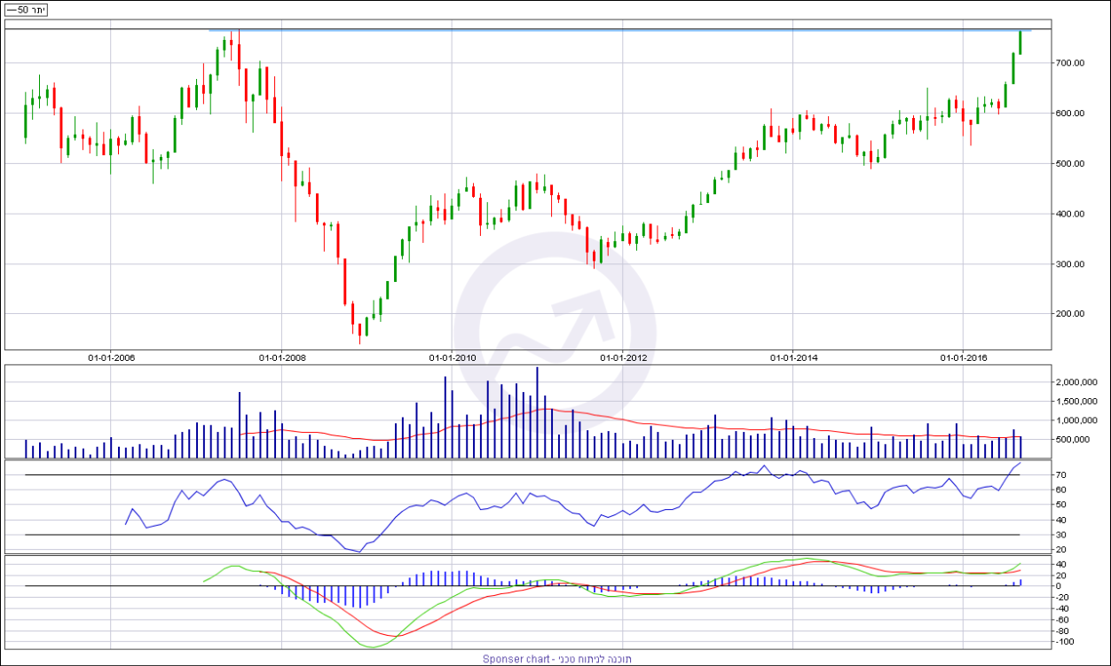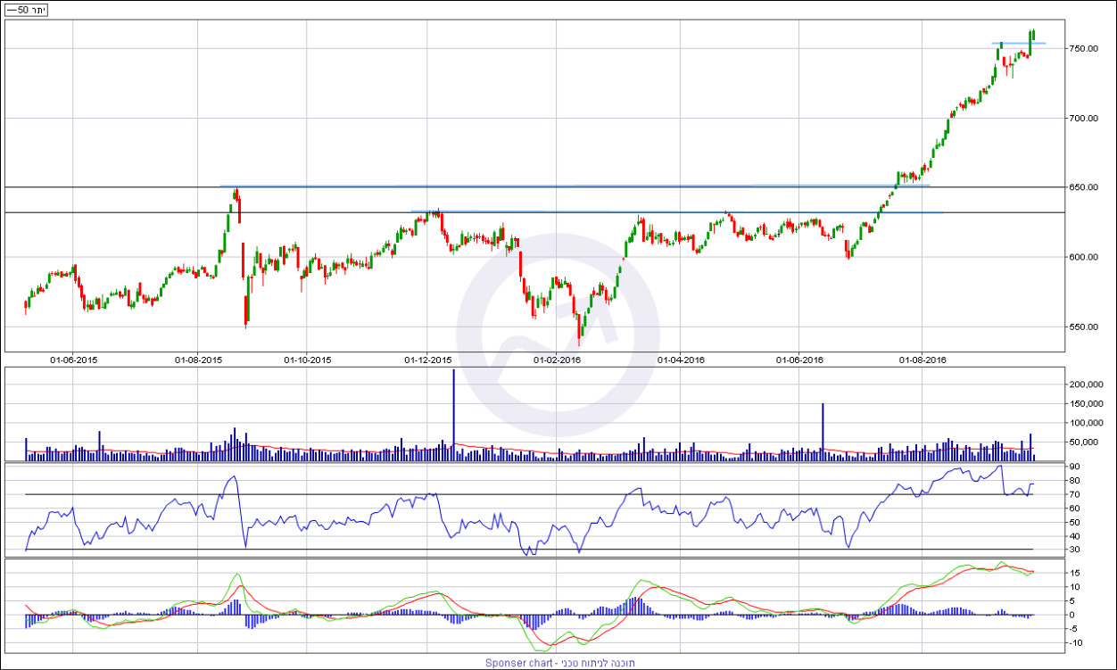 נעילה מעל שיא כל הזמנים ברמה של 767 נקודות תהיה חיובית להמשך המגמה ואולי אף יכולה להכניס כספים חדשים למדד ולהמשיך את הראלי.