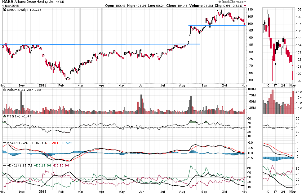 גרף מניית עליבאבא; מקור: StockCharts.com