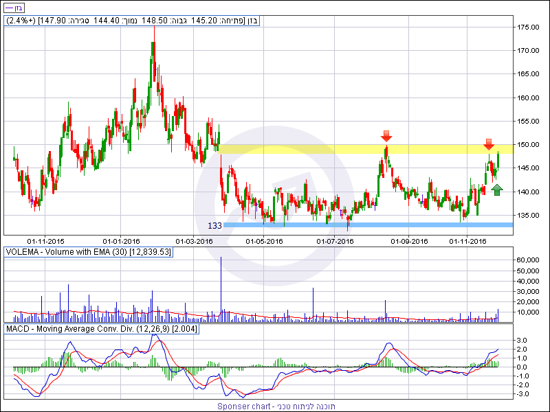 בשלב זה, המניה מתמודדת עם אזור ההתנגדות האופקי 149-150 נקודות אשר בלם את המגמה החיובית במהלך חודש אוגוסט. הפעם נראה שקיימת אפשרות סבירה לפריצת אזור התנגדות זה וסיום תקופת הדשדוש הארוכה מהסיבה שהמניה עצרה להתאווררות בשבוע שעבר כך שבפועל יש מקום להמשך המגמה העולה במידה ותפרוץ כלפי מעלה את ההתנגדות.