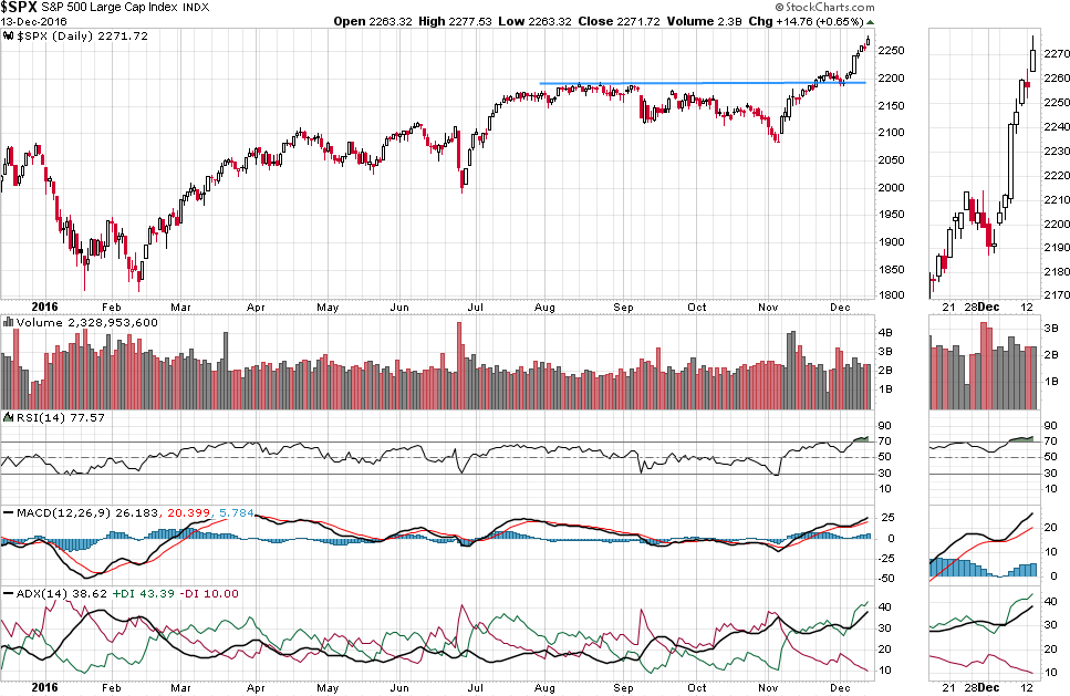 זאת הייתה יריית הפתיחה לראלי חסר מעצורים ועליות שערים שטרם נפסקו ערב ההכרזה על הריבית בארה"ב. רק להביט על הגרף של מדד האס אנד פי 500 שקבע גבוה חדש ועליה של כ 6% מיום הבחירות ועוד היום ויותר מזה הראלי המטורף במדד הסולידי והכבד יותר מדד מניות 30 חברות התעשייה הגדולות – מדד הדאו ג’ונס 30 שעלה קרוב ל 9% שהוא אוטוטו נושק לקידומת פסיכולוגית של 20000 נקודות.