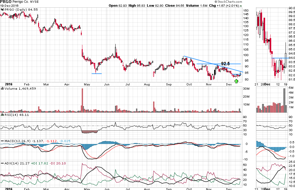 שפל המחירים האחרון נמצא ברמה של 81.45 דולר שם נוצר שפל עולה לטווח הקצר. אתמול יצאה המניה מעט קדימה ופרצה אזור התנגדות נקודתי ברמה של 84 דולר, המשך עולה היום ורצוי להשאר מעל 81.5 יכול להביא להמשך תיקון עולה בנייר עד לאזור של השיא האחרון סביב 92-92.5 דולר למניה.