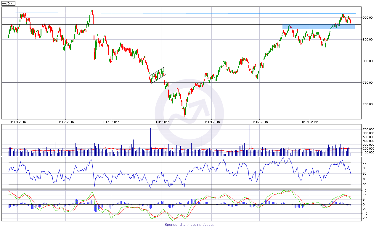 הערכה שלי שנראה תמיכה סביב הרמות שצוינו לעיל ורק כזו ברורה תיתן אפשרות כניסה נוחה למדד לטובת תקיפה נוספת של אזור 910 נקודות.
