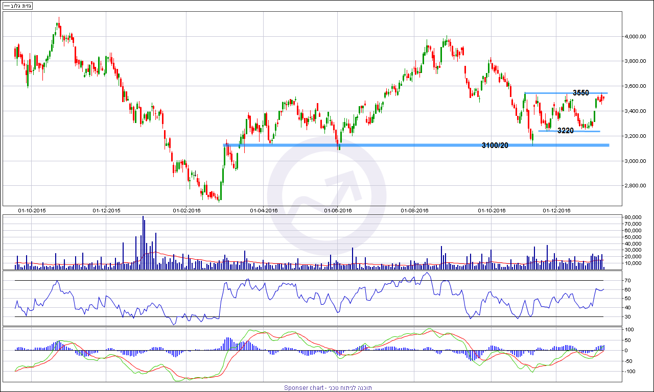 עוד אציין את אזור של 3100/20 נקודות שהוא אזור תמיכה חזק מאוד גם בגרף היומי וגם בראייה ארוכת טווח בגרף שבועי, ירידה מתחת יכולה למשוך את המניה לנמוכים האחרונים מתחילת 2016 סמוך ל 2700 נקודות.