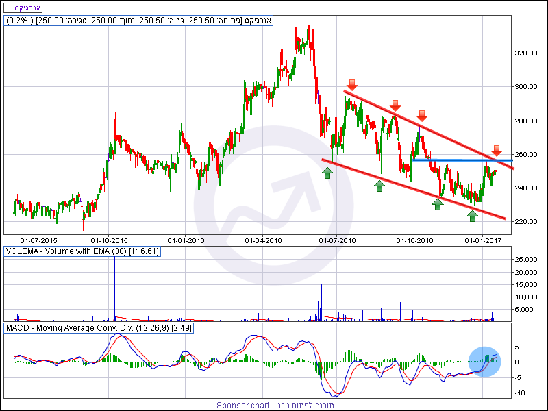אזור 235-237 שימש כרמת תמיכה במהלך שנת 2015 וגם בשנת 2016. ברבעון האחרון לשנת 2016 המניה שברה כלפי מטה את אזור תמיכה זה, אולם חזרה להיסחר מעל אזור זה כבר בתחילת חודש ינואר הנוכחי. מאז המניה רשמה שפל עולה ראשון וכעת מתמודדת עם אזור התנגדות מפתח סביב 255 נקודות.