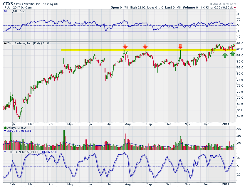 במהלך החודשים האחרונים המניה דשדשה מתחת לאזור 90 דולר אשר הפך להתנגדות במהלך חודש יוני האחרון. מאז המניה נכשלה פעמיים בפריצתו, אולם בתחילת חודש דצמבר המניה פרצה רמה זו וקבעה שיא תקופתי חדש.