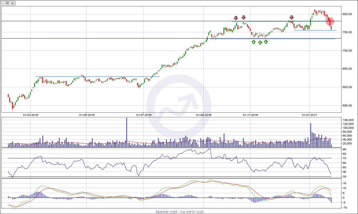 נכון לכתיבת שורות אלה, המדד ממשיך במימושים ומאבד מערכו מעל 1%. תמיכה קרובה קיימת סביב 755 נקודות, אולם התמיכה מהותית יותר נמצאת סביב 730/3 נקודות.
