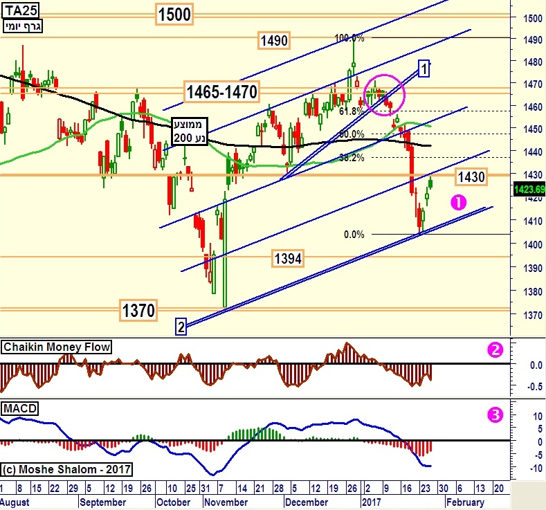 כמו שנראה בהמשך, מדדי וול-סטריט החליטו לפרוץ מעלה, וזה עזר למדד שלנו להראות קצת חוזק יד אחרי תקופה קשה למדי. אבל, כאמור, אלו עדיין סימני בוסר של תיקון טכני. רק חזרה בטוחה מעל 1430, ורצוי בעזרת שיאים ושפלים עולים, ובמיוחד חזרה מעל הממוצעים הנעים, כל אלו ישכנעו הרבה יותר.
